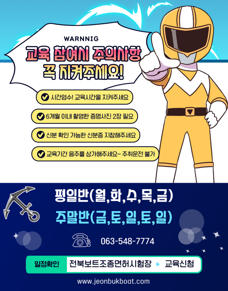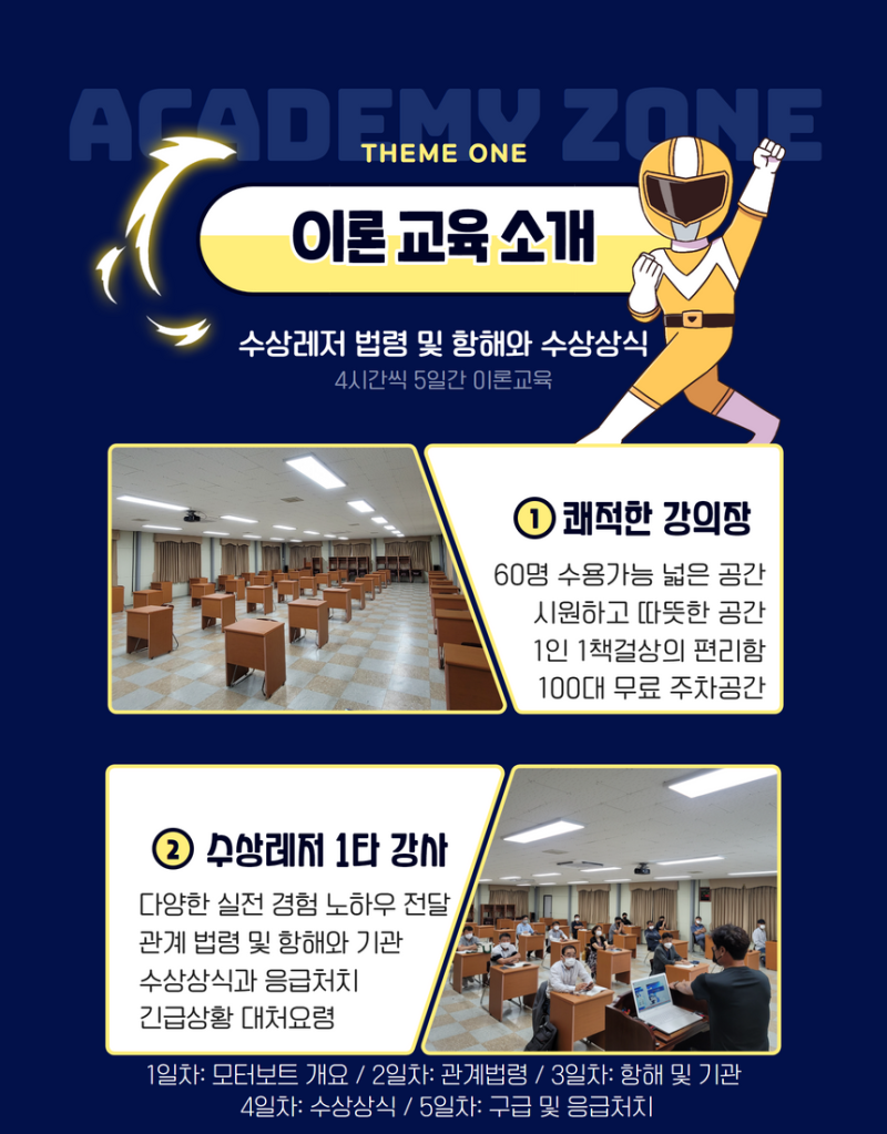 이후 시험을 보셔서 합격하시면 3시간 동안 수상안전 교육을 받으셔야해요~
